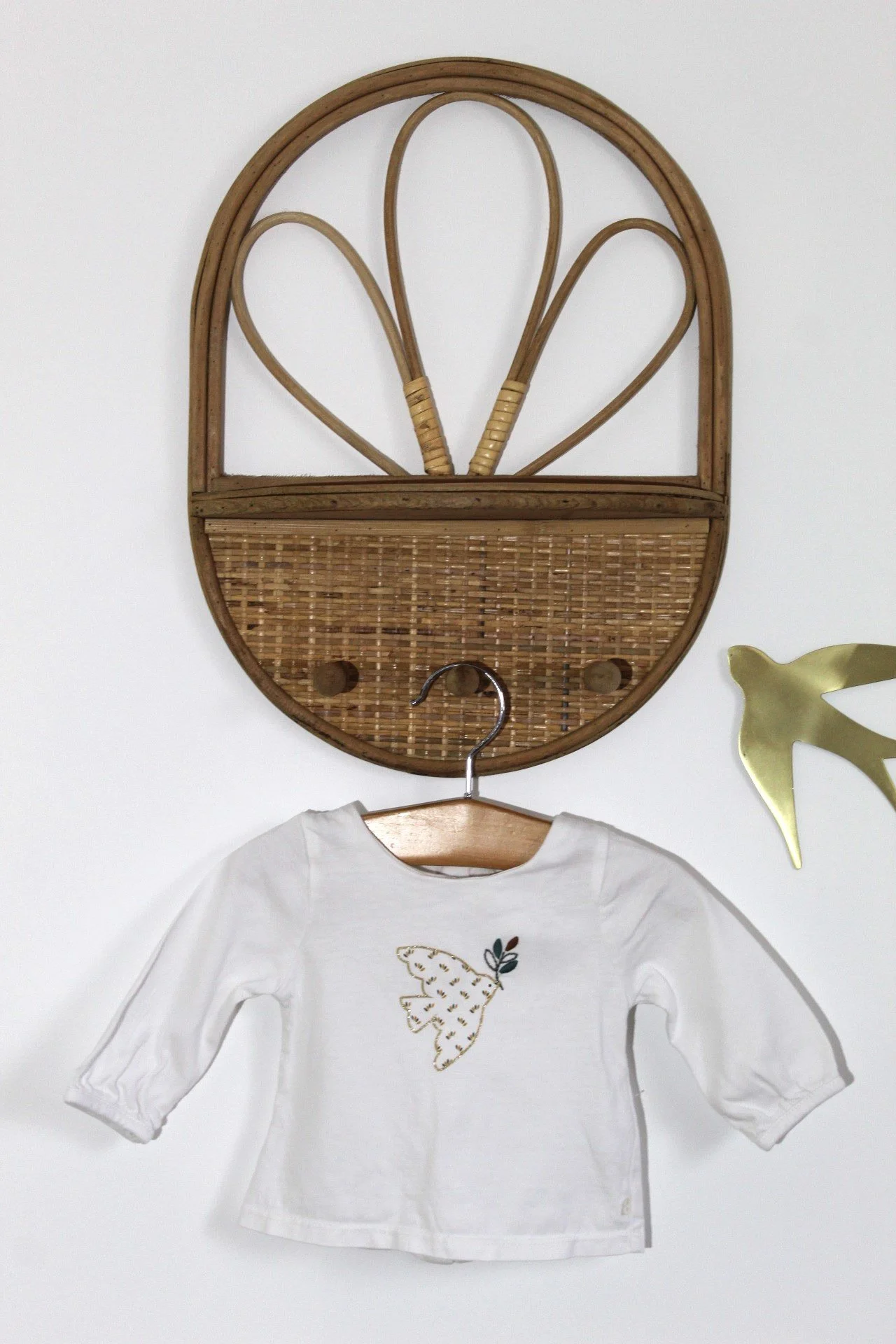 Motif oiseau - couleurs blanc, dorée et vert